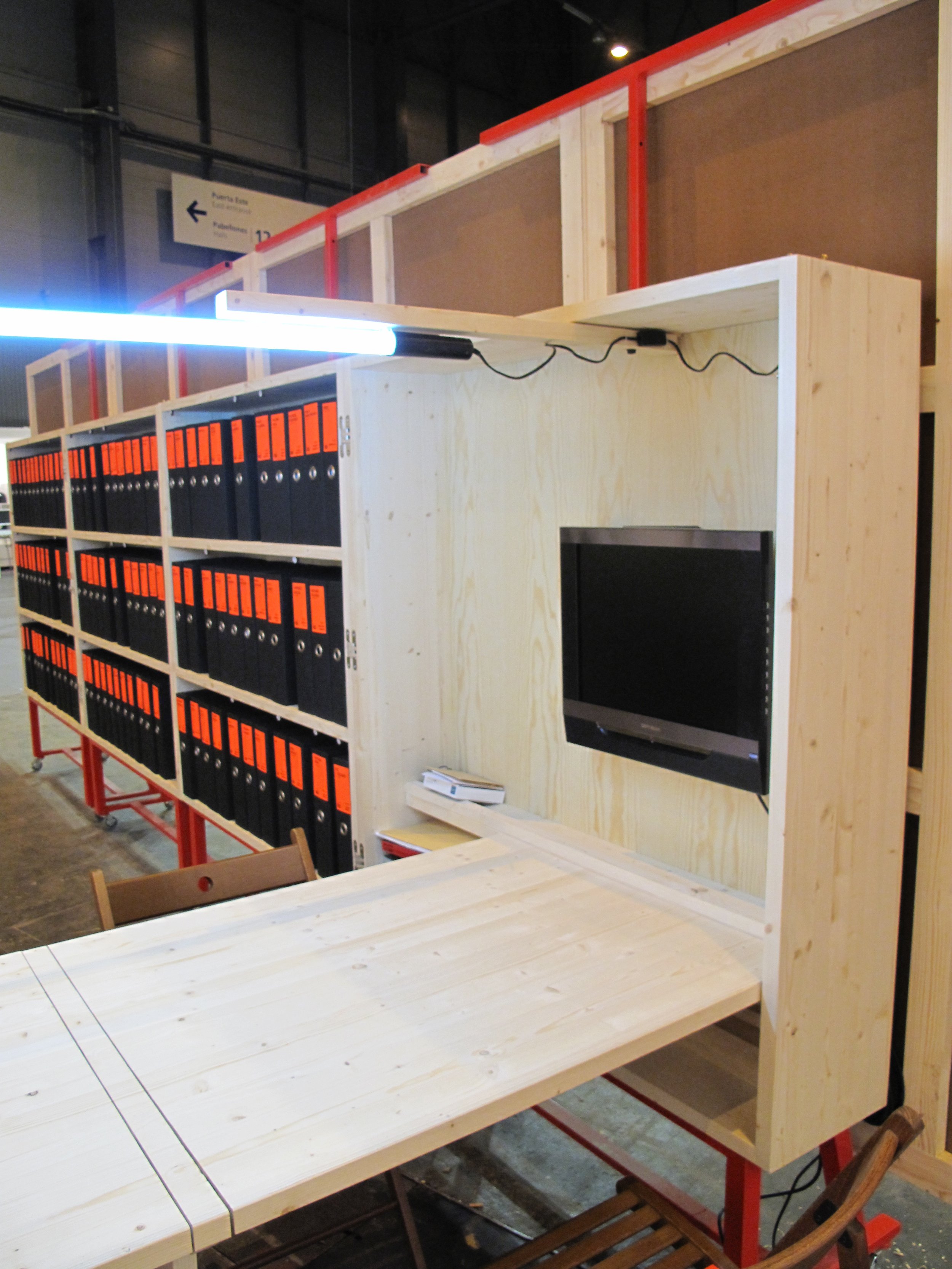 Commissioned by Matadero Madrid, the Archimobile is a one off folding piece, designed by El Ultimo Grito, in which the Archive of Creators of Madrid is hosted. Archimobile is a window through which to look out at the current creative landscape of Madrid, that aims to travel during 2010 and 2013 to different cultural institutions both national and international.