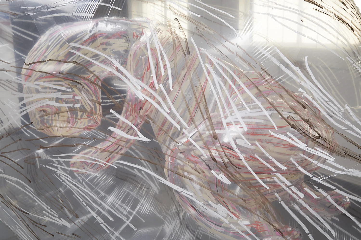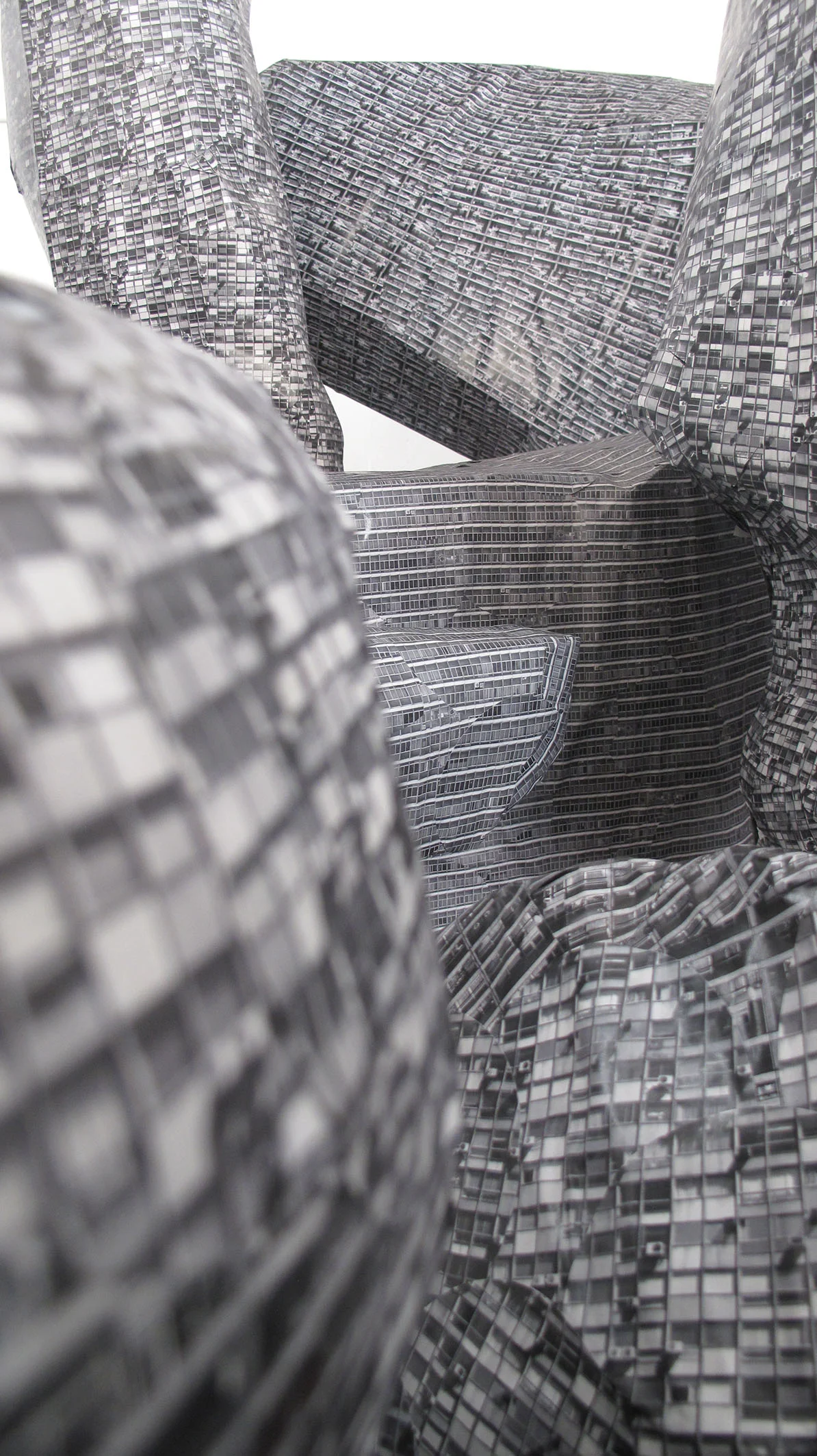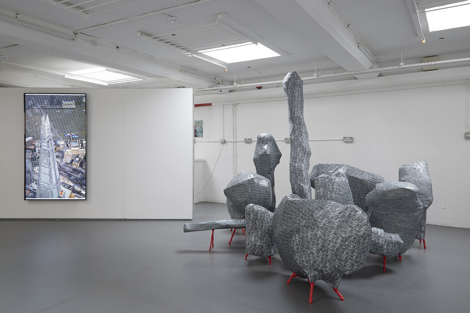 These architectural paradigms (fashions) are temporal but internationally uniform, and part of El Ultimo Grito’s method in their week was to render a number of different but recognisable styles together to create the forms and surfaces of a single United Estates conflated from images of London’s ‘iconic’ Brutalist housing block Trellick Tower, other buildings in Montevideo, and London housing estates. The United Estates sprang up over the week as a number of structures representing a glitched dystopic city that you can’t live in, just as you can’t live in a city without housing or a country refusing to accept immigrants.