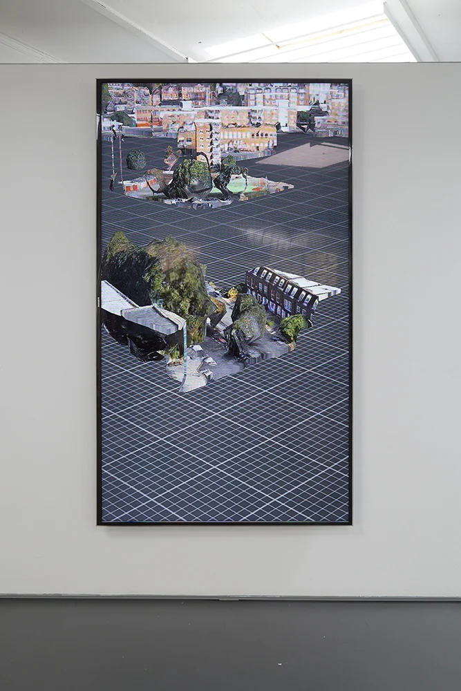 The show included a number of digital prints developed from images created by encountering ‘glitches’ in Maps while walking around London.
