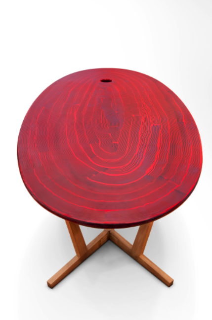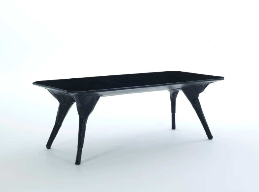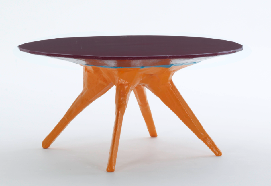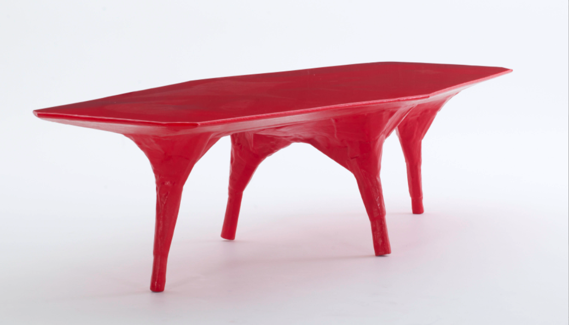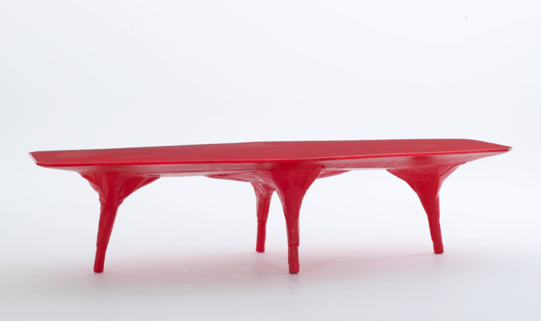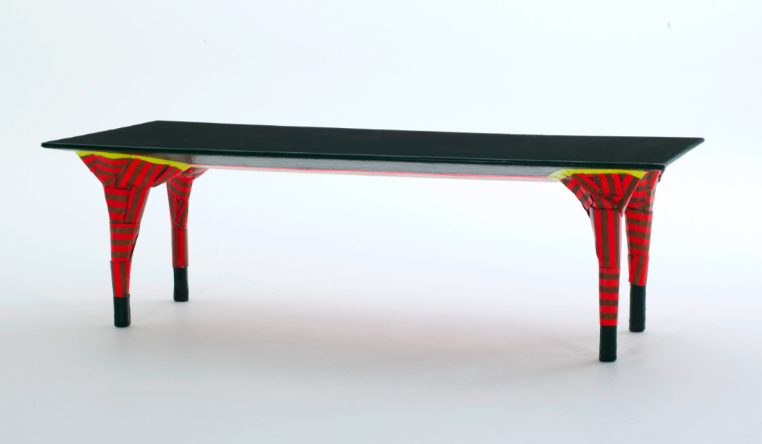 El Ultimo Grito's tables are created to work on multiple axes. The Hanging of Furbellows Table is a monolithic form vertically, re-assembled horizontally it returns to conventional form.